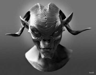 Boy, that's a tricky one. If it's for myself, I'll often just have a glimmer in my mind of what it should come out like and I'll just start. If it's for work, I'll usually have a sketch or design to go from, either from myself or from production. But talking about the creative process is hard. I'm usually trying to capture a mood or an emotion or a personality in what I'm doing. That's the trickiest part, knowing in your mind where something needs to be and transposing that out of your brain, down your arm and out through your fingers. The mechanical part of sculpting is much easier than keep the right internal dialogue going and keeping all the notes in mind as you work, trying to make sure that you're producing exactly what you or your client wants. Phil Tippett calls it "the persistence of vision". Mainly it takes practice and a lot of trial and error. You can't be afraid to screw up. In the beginning, all you'll do is screw up. But that's part of evolving. Even when you're a pro you'll find yourself destroying things and reworking and reworking. It's all part of the process. Sorry if I strayed a bit here.