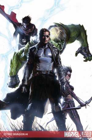 I originally feared the whole Secret Invasion storyline would suffer the same problems as World War Hulk and other Marvel events. It seems that after all is said and done, few happenings in the house of Marvel leave any lasting marks. Though Civil War made arguably the biggest change in the status quo of Marvel in years by having Spider-Man unmasked, the move was eliminated in Brand New Day. Hulk came back to Earth only to be locked up again. Also, Bendis' pacing of his story has been a bit disoriented, with some issues without any major developments. Tony Stark and Jessica Jones have been standing together in the same discussion for three issues. You wouldn't know that Secret Invasion has taken place over 24 hours so far. Brand new day indeed.