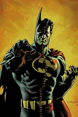 If that wasn't enough to drive home the message that Superman and Batman are forever linked, now we have a story retelling the origin of the Composite Superman, an old World's Finest villain dating back to the sixties. Batman and Superman learn that Professor Ivo, creator of the superpower-absorbing robot Amazo, once tried to collect DNA left over from scenes where JLA members had been seen in action. This DNA was meant to create an actual superhero with the powers of the JLA, not just a robot. The experiment failed, and Ivo buried the carcass. Now it's risen from its burial, and it desperately wants to be Superman and Batman, and Clark Kent and Bruce Wayne too.