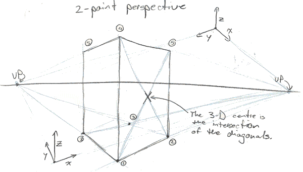 In 3pt perspective, the z-axis lines also converge towards a vanishing point, located off the horizon line.