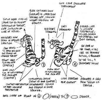 Here is a list of things (principles) that appear in these drawings, most of which should appear in all scenes, for they comprise the basis for full animation