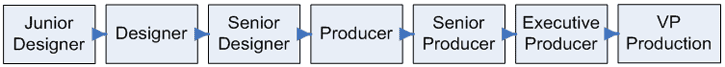 The diagram below represents a Game Designer’s career path within a large development studio.